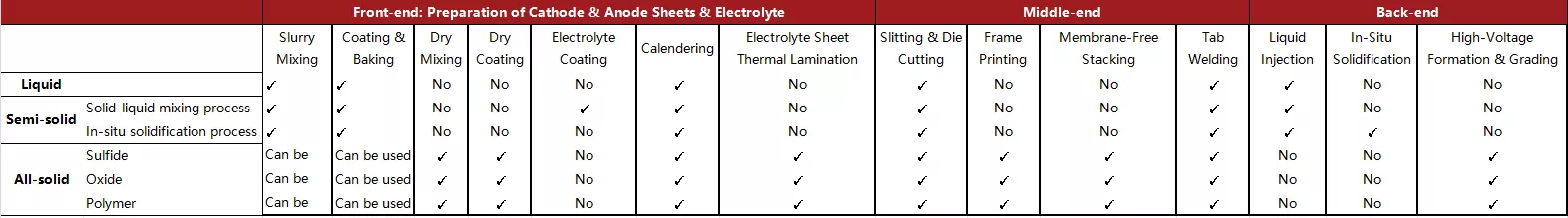 Semi-solid-state batteries are highly compatible with existing liquid battery production lines, and the value of all-solid-state battery equipment has been significantly improved. Compared with the production process of liquid lithium batteries, semi-solid-state batteries can be transformed and upgraded on the basis of existing liquid battery production lines. The core changes are the addition of solid electrolyte coating, roller pressing equipment upgrades, and the use of high-voltage formation equipment. Overall, the transformation compatibility of existing production lines is relatively high. All-solid-state batteries introduce new processes and new equipment in both the front and middle stages, and the manufacturing difficulty is further increased, which drives the value of solid-state battery equipment to increase significantly.